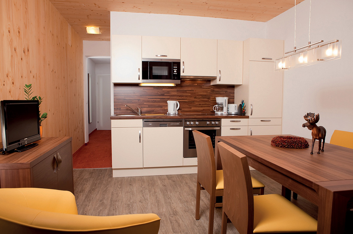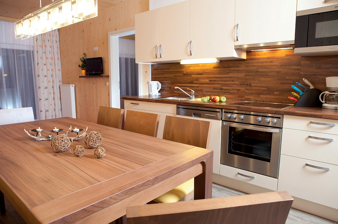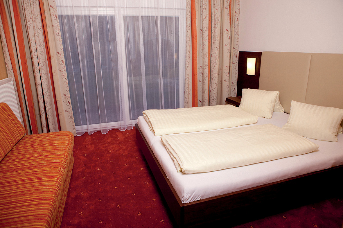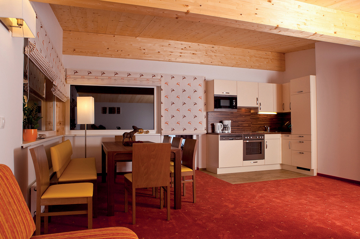41 m² - ložnice s manželskou postelí, obývací pokoj s kuchyňským koutem a rozkládacím gaučem pro 2 děti do nedovršených 13 let, sociální zařízení, balkon; maximální obsazenost pokoje jsou 2 dospělé osoby a 2 děti do nedovršených 13 let