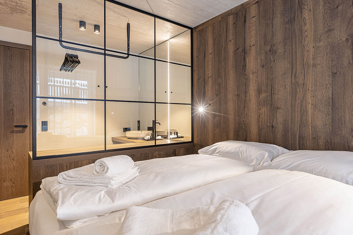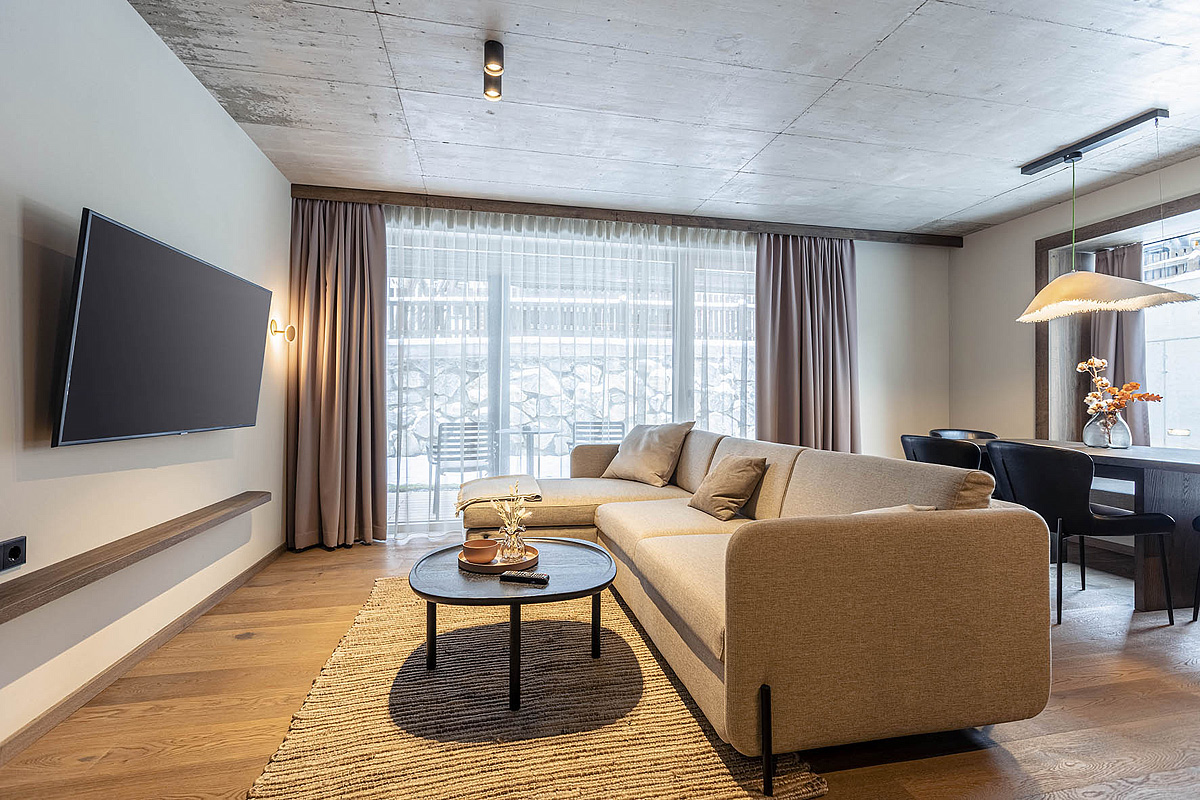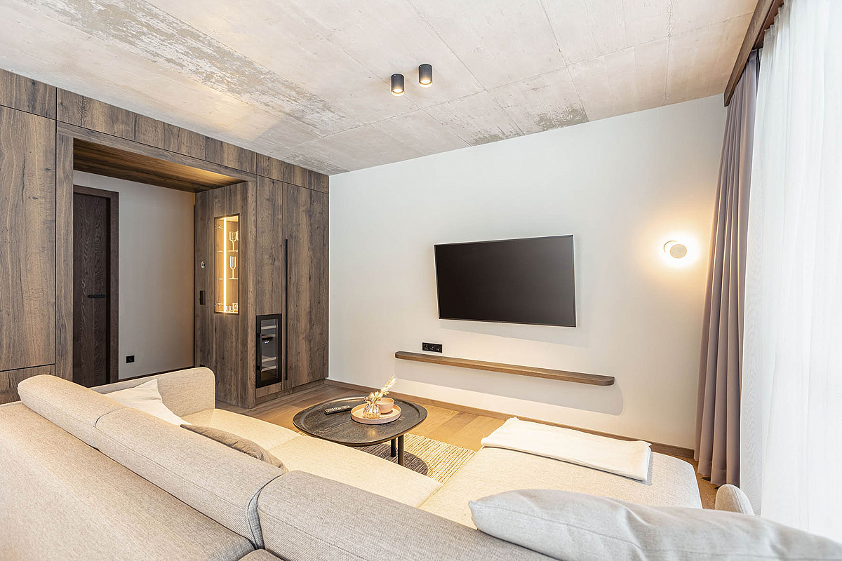 65 m² - 2x ložnice s manželskou postelí, obývací pokoj a kuchyňským koutem, sociální zařízení, separátní WC, privátní sauna, terasa