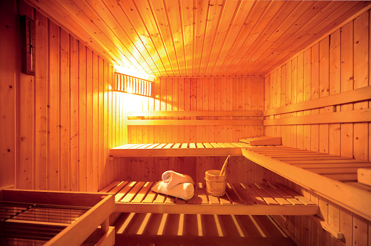 sauna, pára, infrakabina, zážitková sprcha, relaxační koutek s lehátky, solárium*, biliár*, stolní fotbal