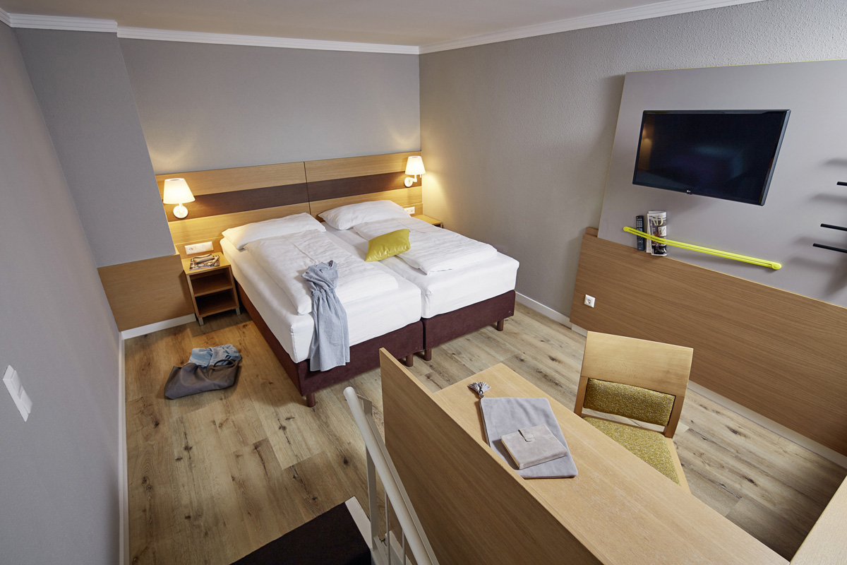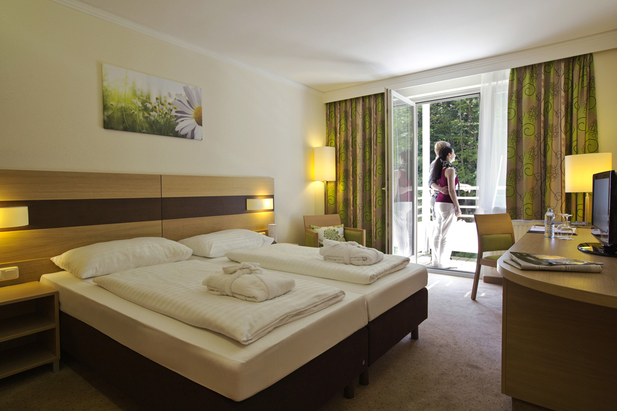 24 m² - pokoj s manželskou postelí či 2 samostanými lůžky, sociální zařízení, balkon; nelze ubytovat infant