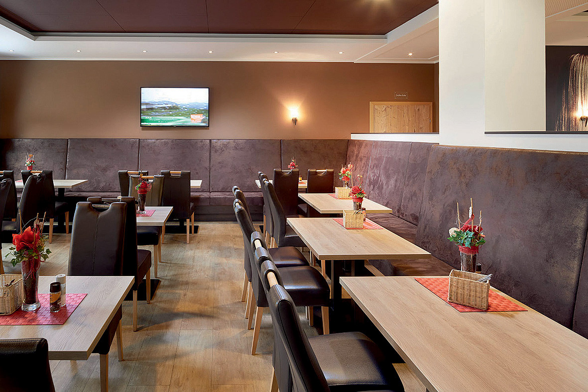 zpravidla formou bufetu včetně salátového bufetu, příležitostně tématický bufet, od 10.00 do 23.00 hod. nealkoholické nápoje, káva, čaj, pivo, víno, vybrané lihoviny jako gin, rum, whisky, vodka, brandy; ostatní nápoje za poplatek