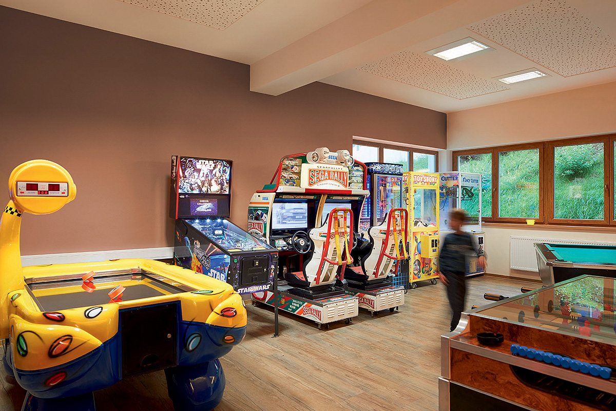 venkovní bazén, finská sauna, bylinková sauna, relaxační koutek s lehátky, posilovna, stolní tenis, boulderová stěna, lukostřelba, půjčovna horských kol a elektrokol (dle dostupnosti), víceúčelové hřiště pro míčové hry