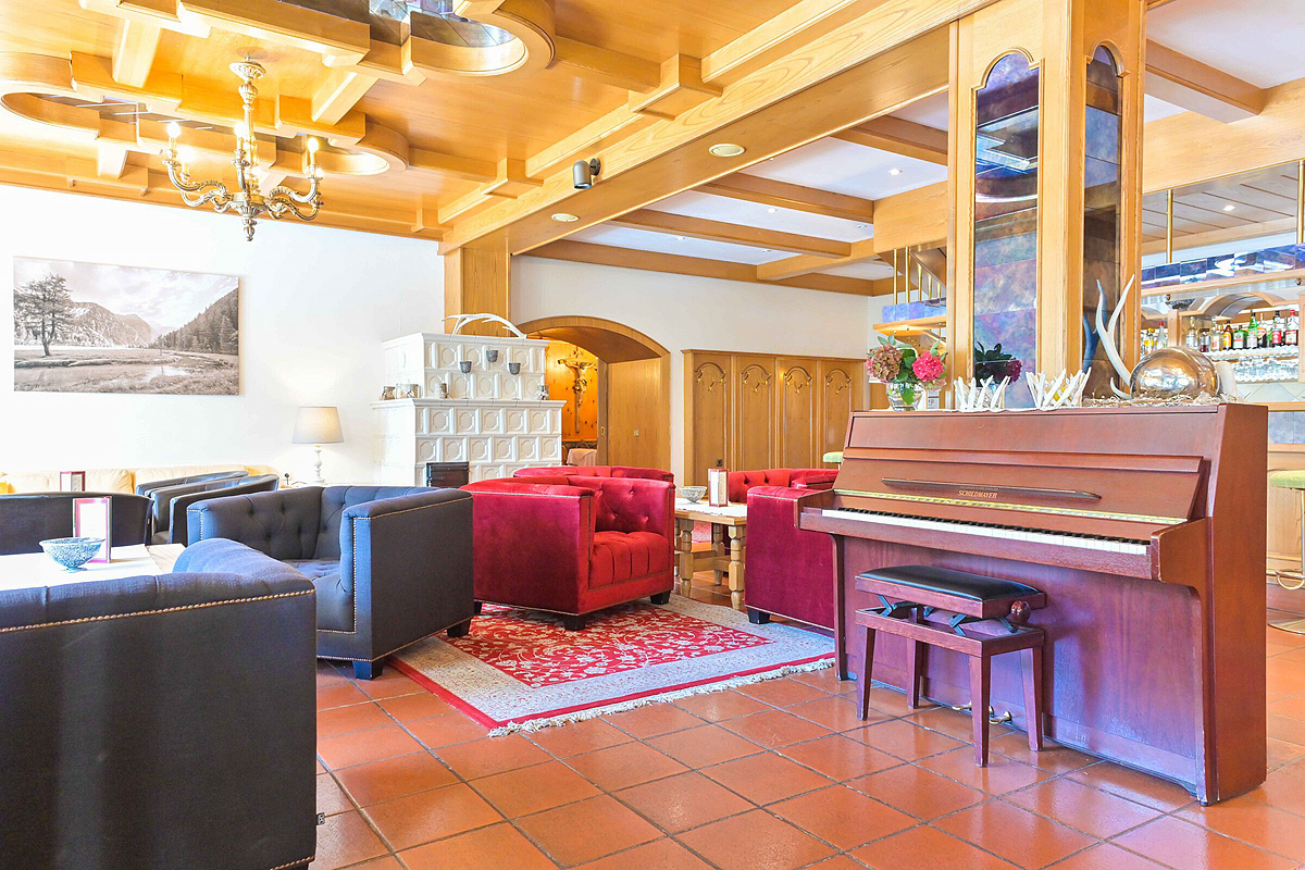 recepce / lobby, restaurace vyhrazená pro hotelové hosty, stylová restaurace s otevřeným krbem / bar, společenská místnost s TV, wi-fi připojení k internetu, sluneční terasa s posezením, zahrada s posezením, hlídací služba dětí (na vyžádání od 3 do 12 let v červenci a srpnu od pondělí do pátku), úschovna kol, výtah, vyhrazené parkoviště