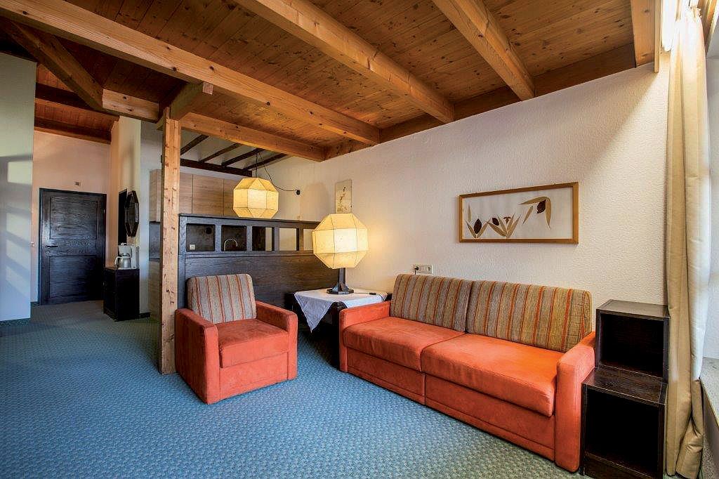 bilo 4 - 65 až 70 m² - obývací pokoj s kuchyňským koutem a 2 samostatnými lůžky, neuzavřené zvýšené patro v rámci obývacího pokoje s manželskou postelí, sociální zařízení, balkon