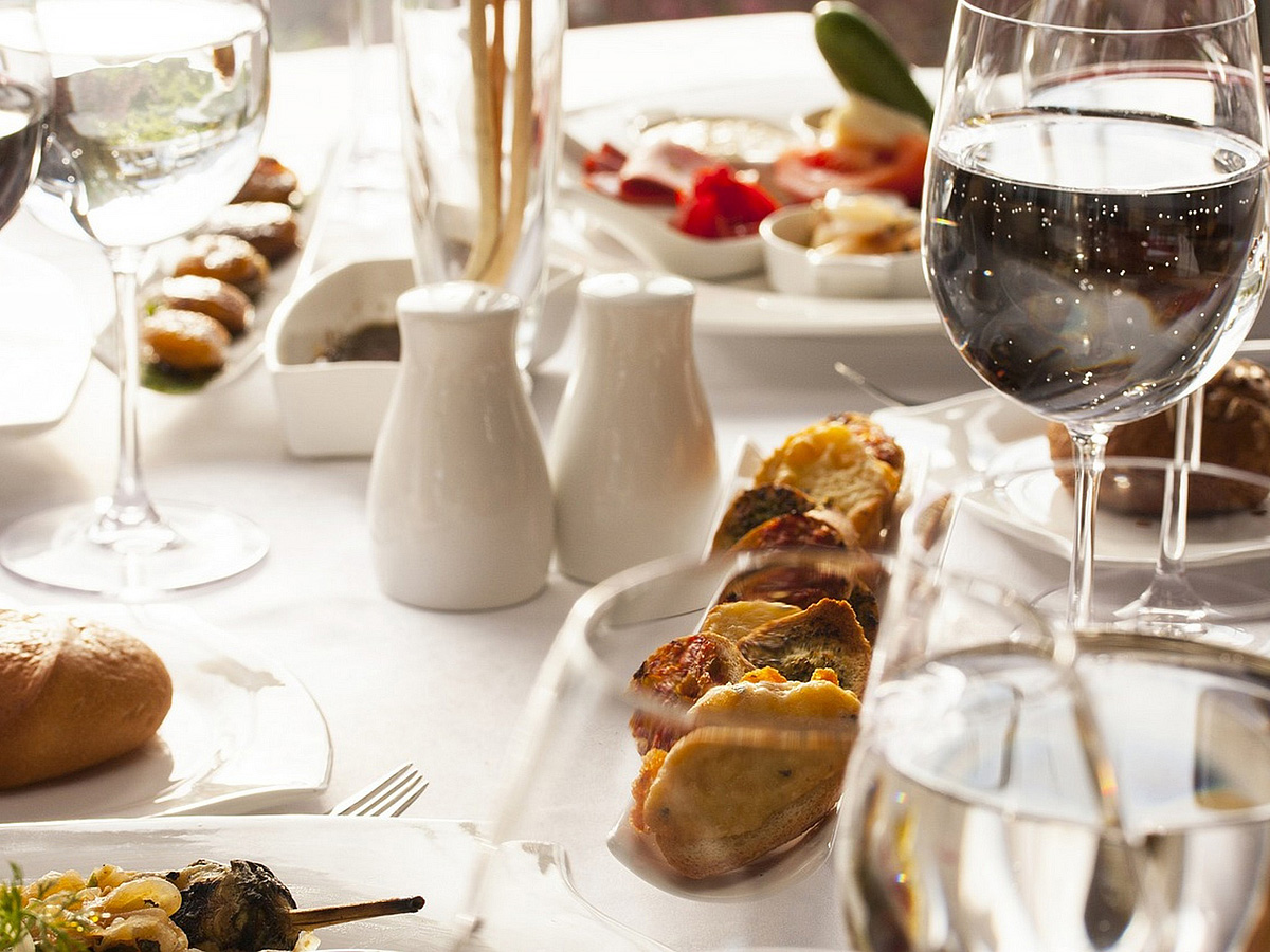 3chodové menu či formou bufetu s výběrem hlavního jídla s přílohou (1 jídlo vždy vegetariánské), salátový bufet, 1x menší nápoj k večeři; ostatní nápoje za poplatek