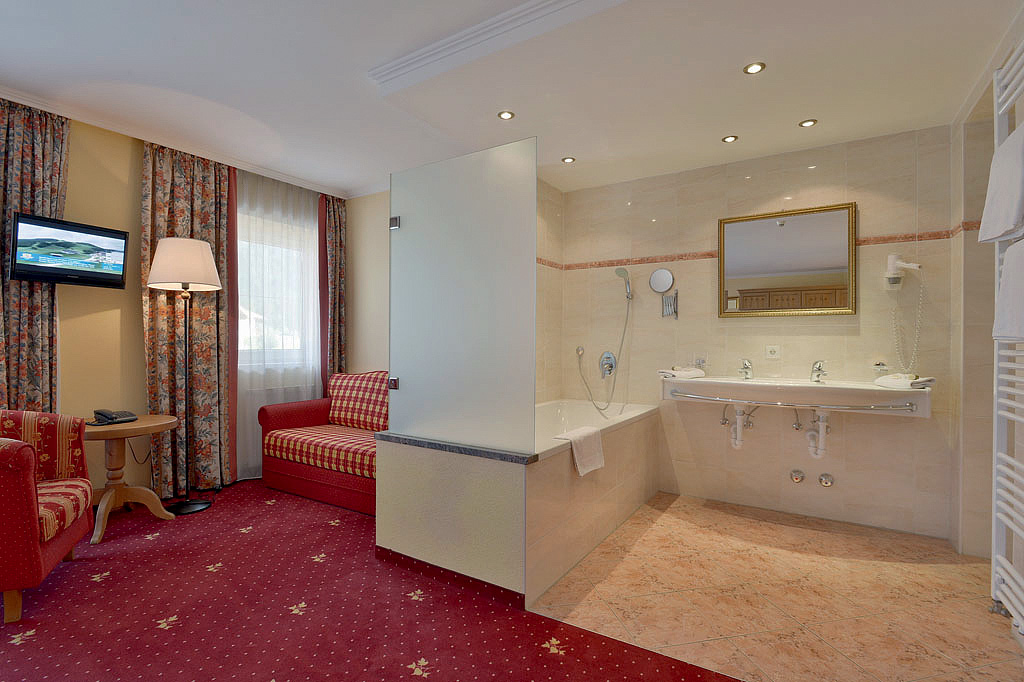 30 m² - pokoj s manželskou postelí a případně přistýlkou pro 1 osobu, sociální zařízení se sprchou či vanou, balkon
