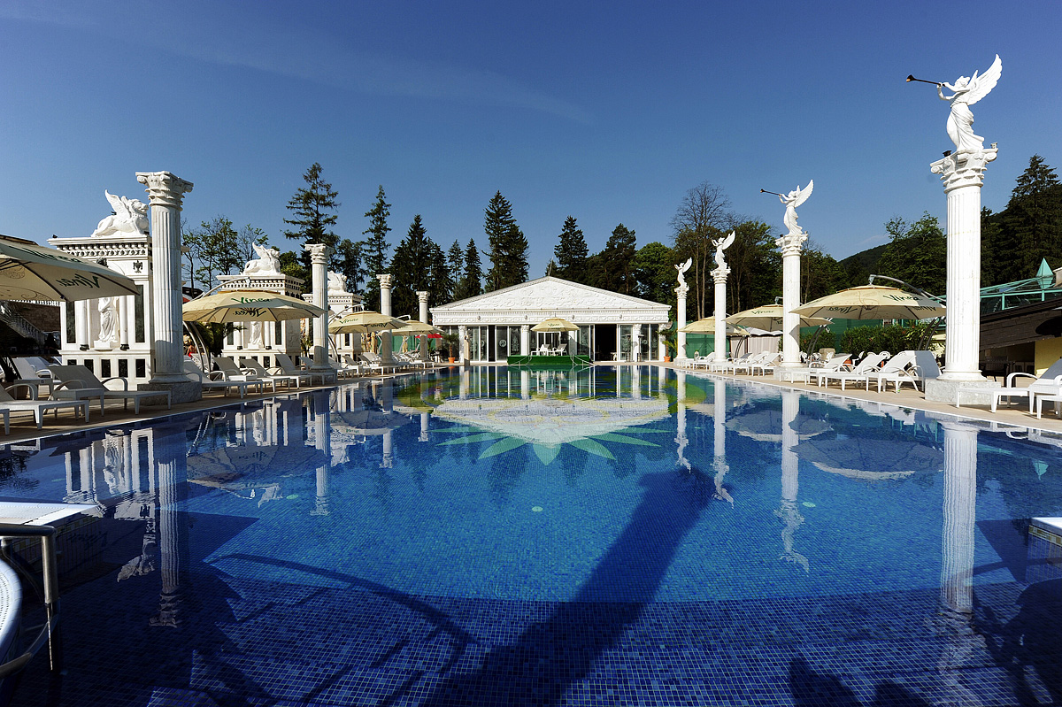 Saunový svět: finská sauna, bylinková pára, mentolová pára, solní sauna, arabská sauna, tepidárium, ochlazovací bazének, odpočinková místnost s lehátky, denně saunové rituály;