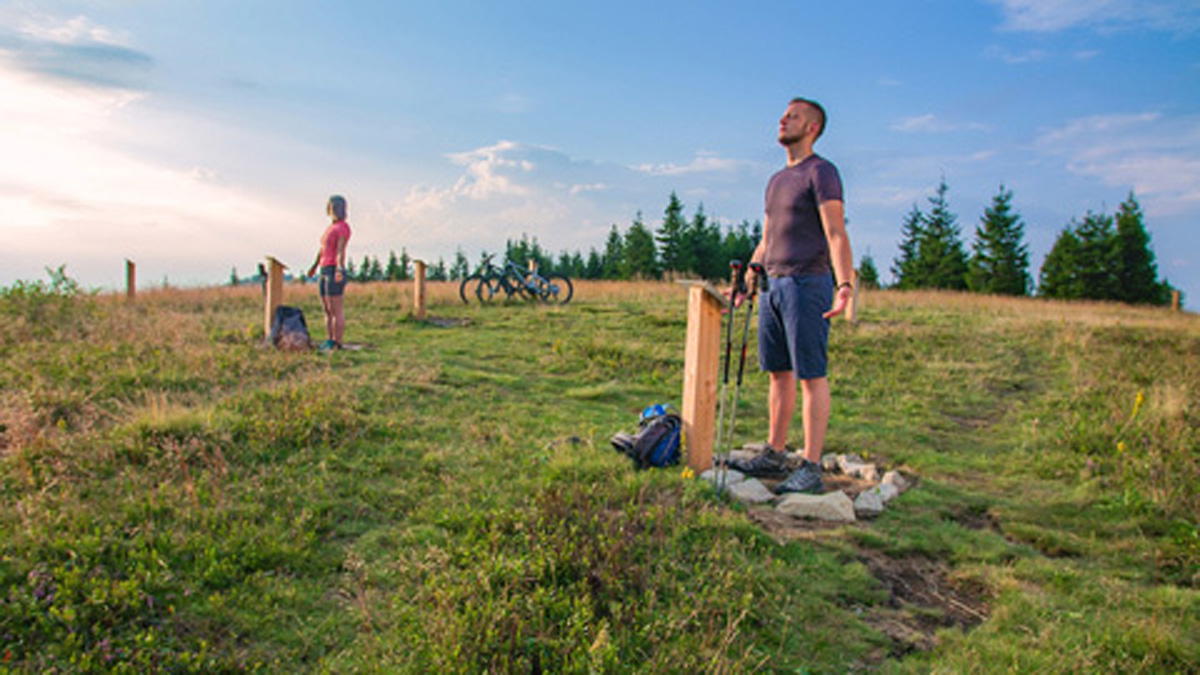 7 značených turistických stezek: od 45minutových rodinných tras až po 4hodinové náročné túry, z nichž každá je barevně značená, zahrnuje odpočívadla s panoramatickým výhledem do 3 zemí