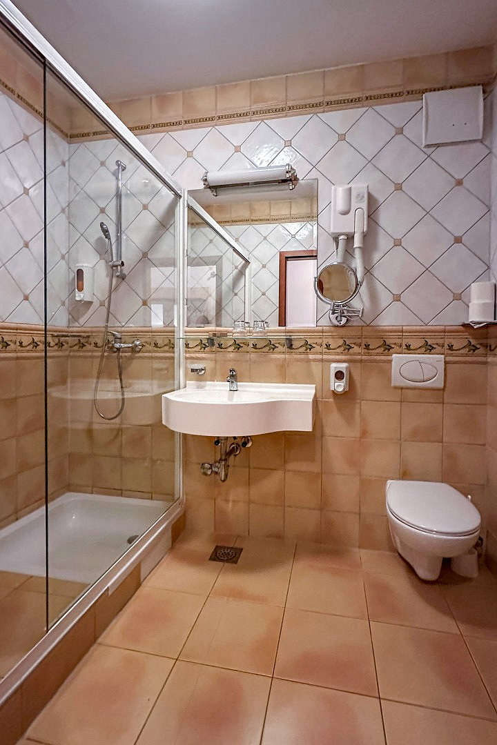 klimatizace, TV sat., telefon, fén, mini chladnička, wi-fi připojení k internetu, župan a osuška (za vratnou kauci 25 €)