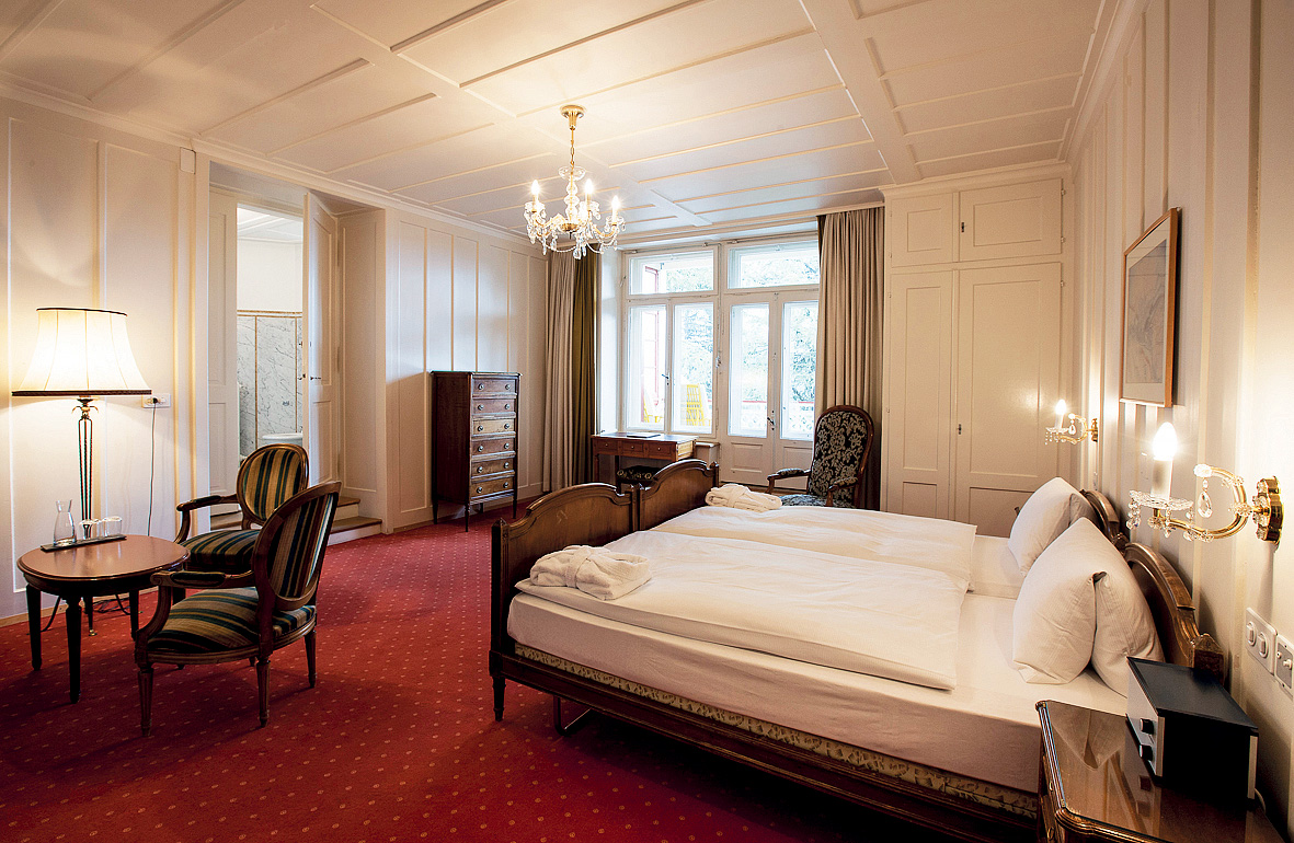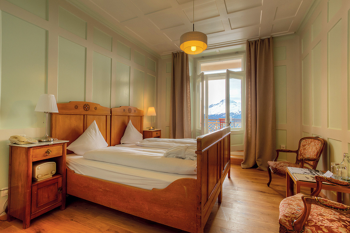 20 m² pokoj s manželskou postelí či 2 samostatnými lůžky a možností dalšího lůžka pro 1 osobu, sociální zařízení, zřídka balkon; pokoje jsou s výhledem na hory