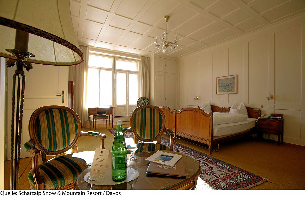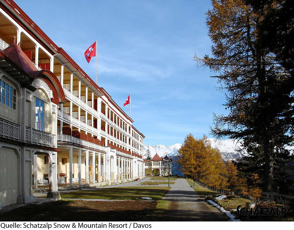 Davos, centrum - 2,5 km, lanovka Schatzalp - 100 m, stanice vlaku Davos Platz - 3,3 km, jezero Davosersee - 4 km