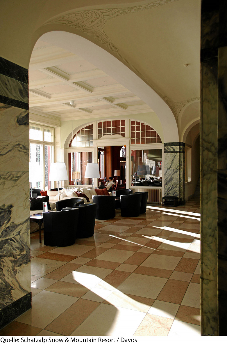 recepce / lobby / internet point, restaurace vyhrazená pro hotelové hosty, restaurace à la carte s panoramatickým výhledem, bar, společenská místnost s TV, 2x seminární místnost, wi-fi připojení k internetu, dětský koutek, hlídací služba* dětí, sluneční terasa s posezením, 2x výtah, úschovna jízdních kol, veřejné parkoviště* cca 300 m od dolní stanice lanovky Schatzalp, garážová stání* cca 300 m od dolní stanice lanovky Schatzalp