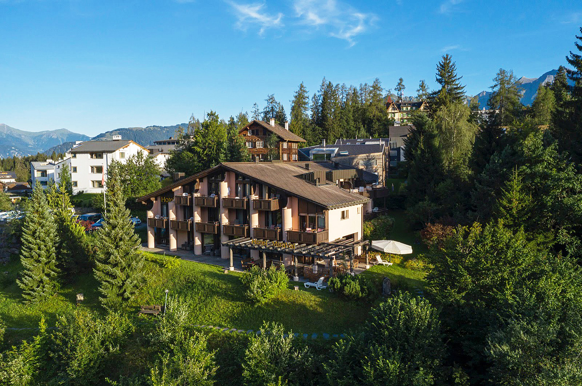 útulný malý rodinný hotel s polopenzí a nestandardně pro Švýcarsko neomezenou konzumací nápojů k večeři