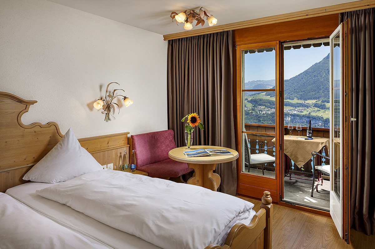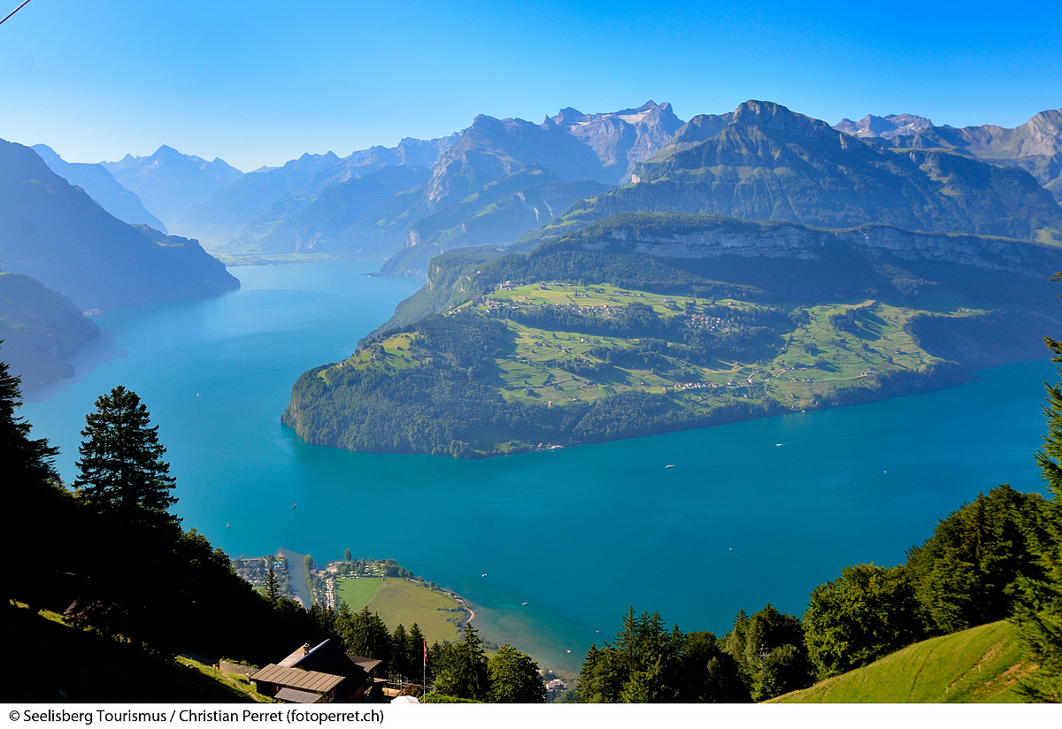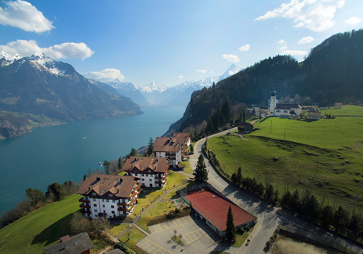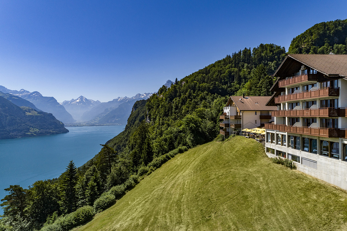 skvělá poloha hotelu s panoramatickými výhledy na okolní hory a Lucernské jezero
