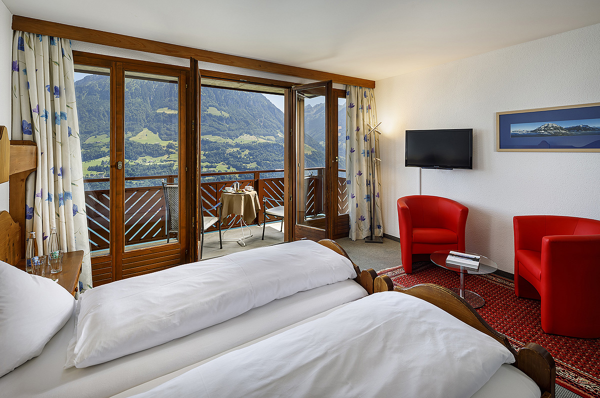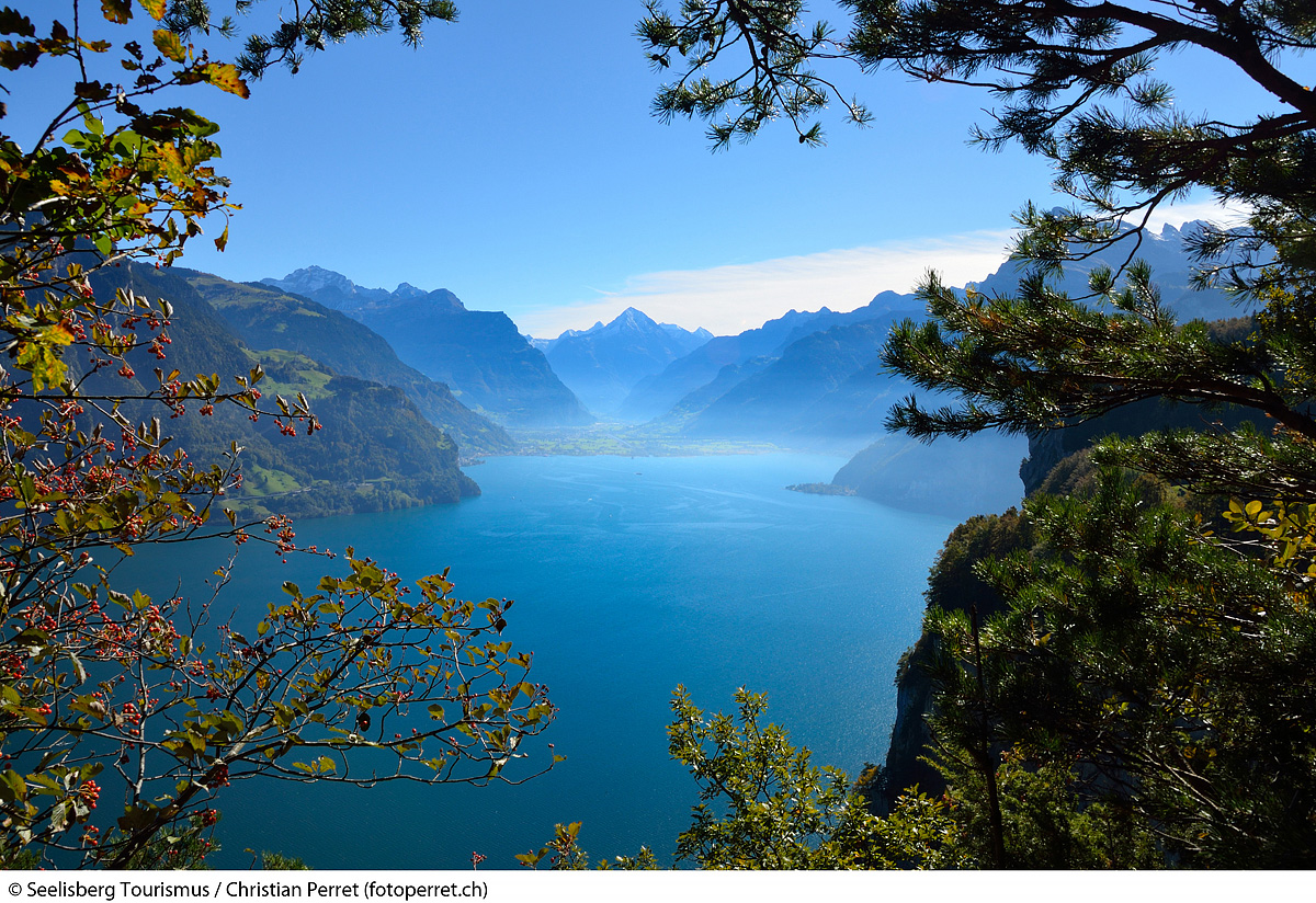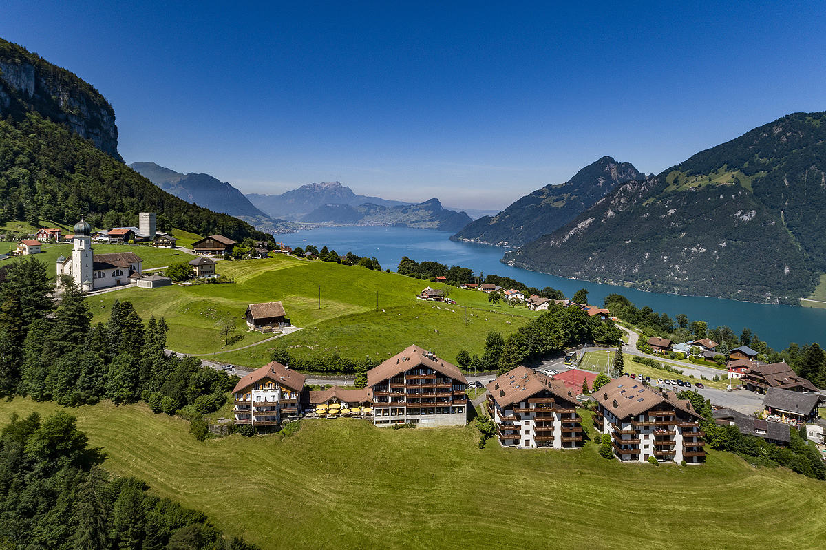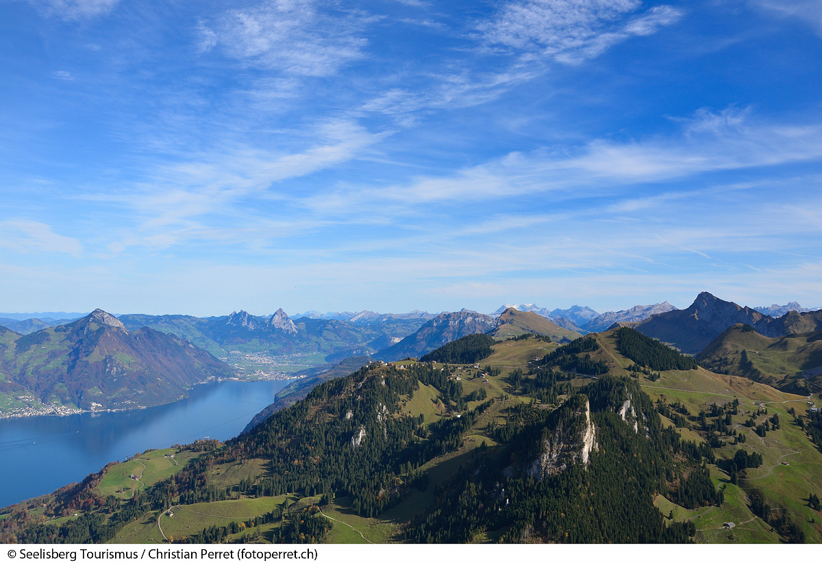 skvělá poloha hotelu s panoramatickými výhledy na okolní hory a Lucernské jezero