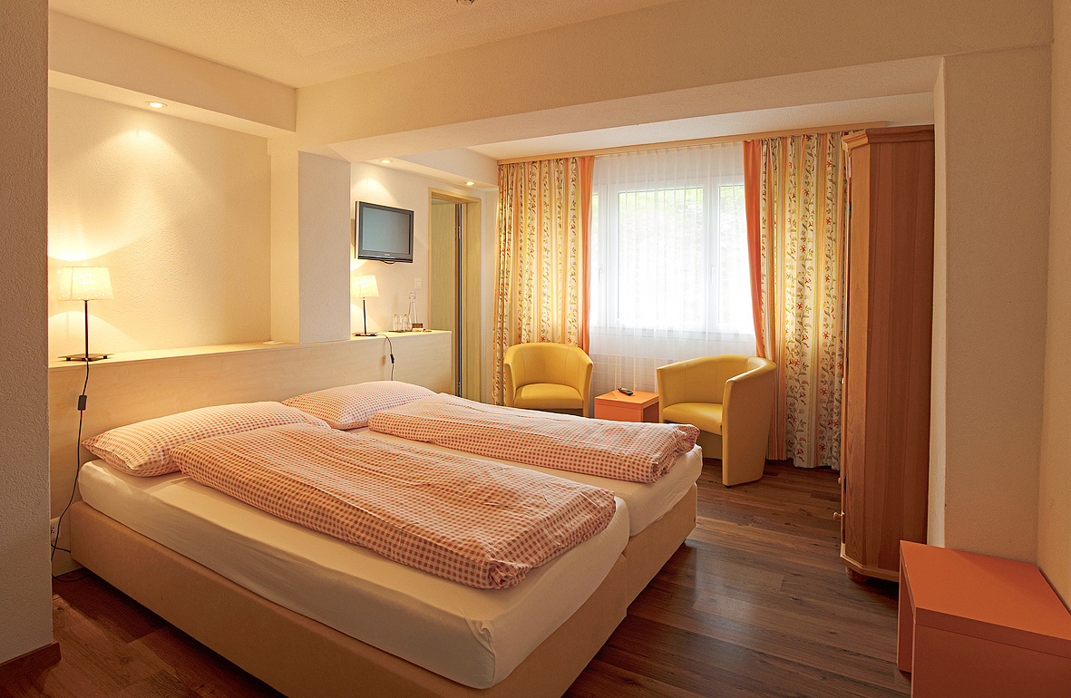 23 m² - pokoj s manželskou postelí či 2 samostatnými lůžky a případně až 2 přistýlkami pro 2 děti do nedovršených 16 let, sociální zařízení, balkon s výhledem na hory; nelze ubytovat infant nad kapacitu pokoje!