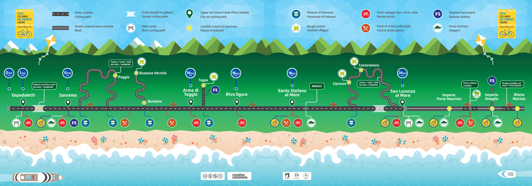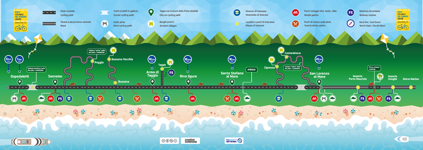 Nejlepší cyklostezkou Ligurské riviéry je bezpochyby tzv. „Cycling Riviera“ – 24 km dlouhá trasa ze San Lorenzo al Mare do Ospedaletti. Sleduje trasu staré železniční tratě táhnoucí se podél pobřeží, je zcela bez automobilového provozu a vhodná pro rekreační cyklisty.
