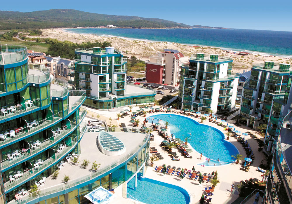 Komplex několika budov cca 200 m od centra střediska s mnoha bary, restauracemi a obchody.