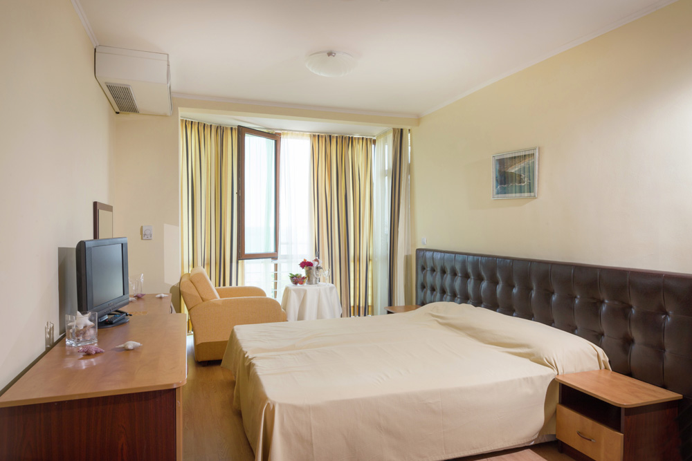 DR: koupelna/WC, vysoušeč vlasů, klimatizace, TV/sat., telefon, trezor, minilednice, balkon nebo terasa. DRR: viz DR, prostornější.
