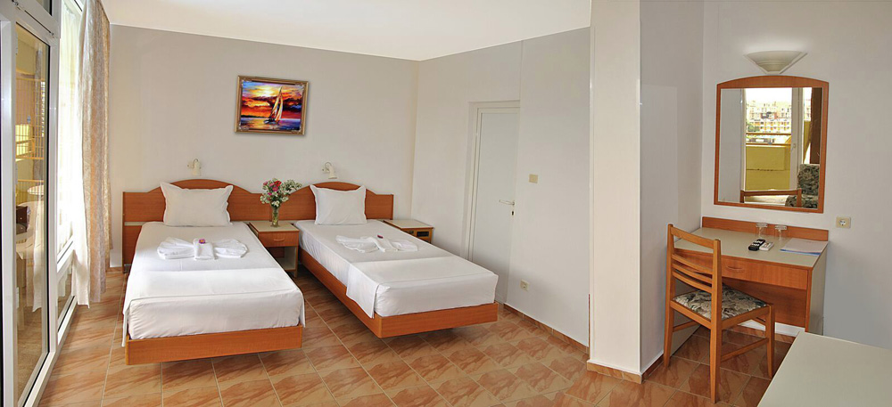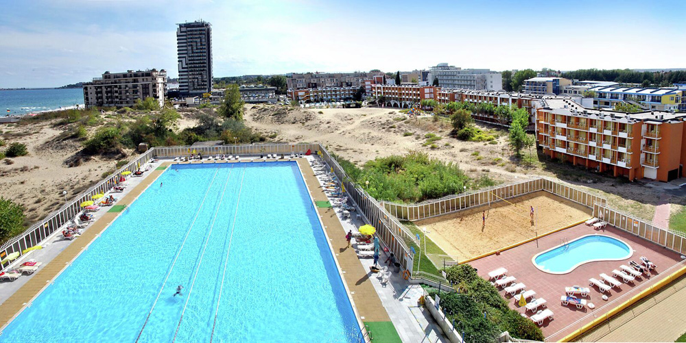 V klidnější části letoviska, na pláži, centrum města s možnostmi zábavy a nákupů cca 500 m. Autobusová zastávka se spoji do Nessebaru 300 m. V blízkosti aquapark a lunapark.