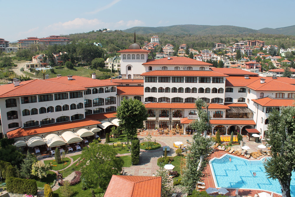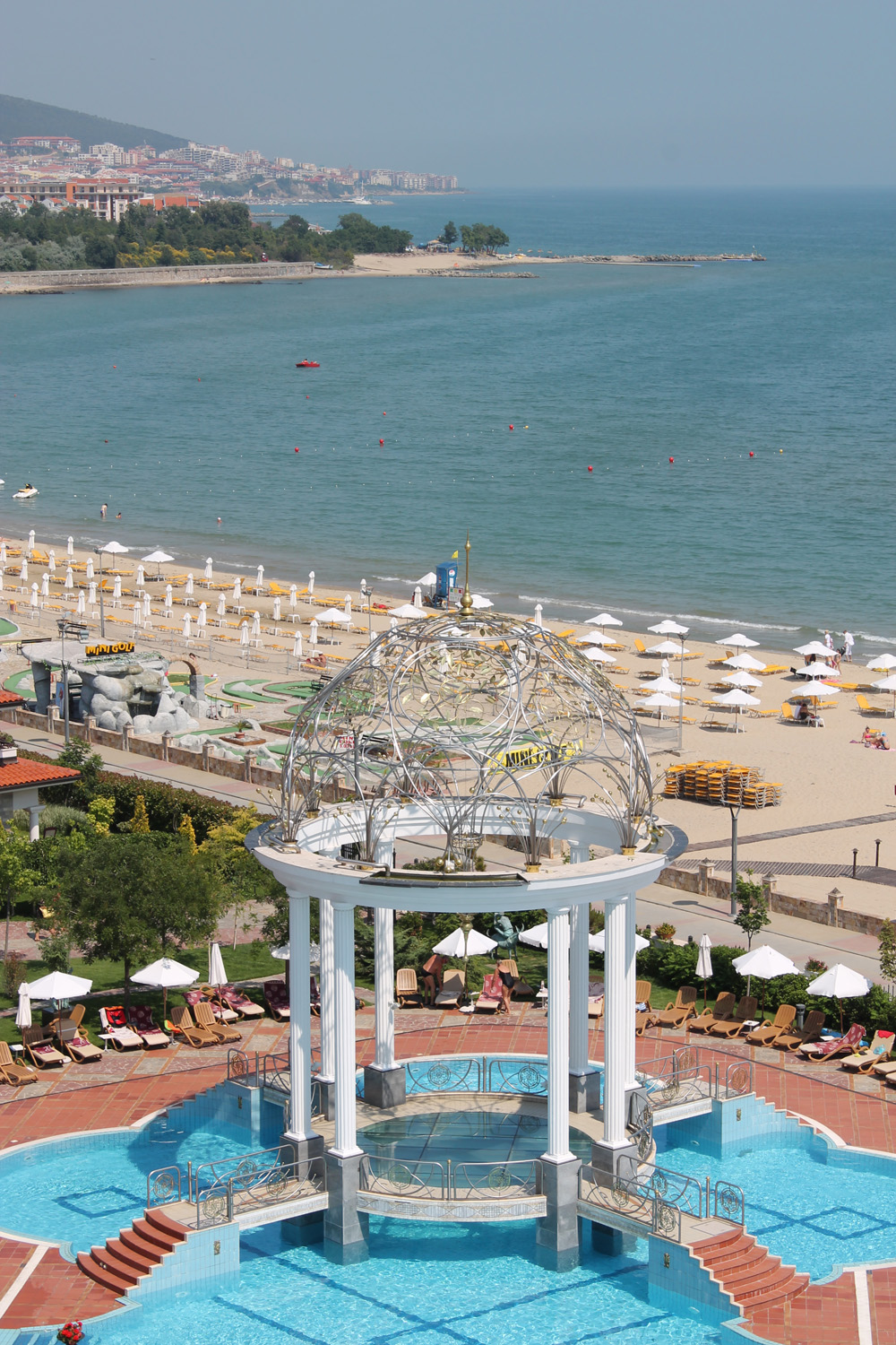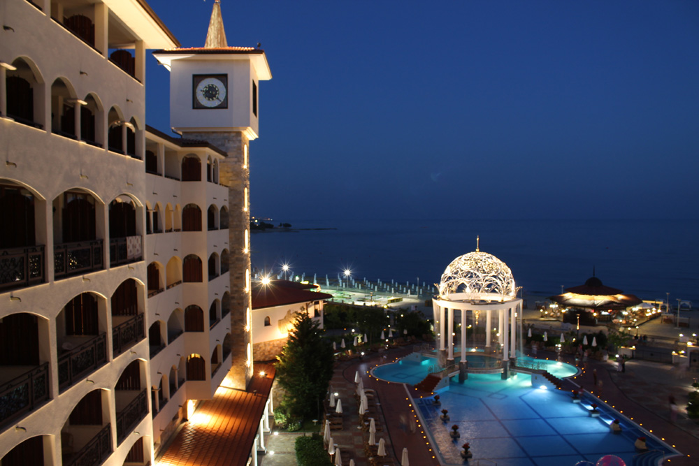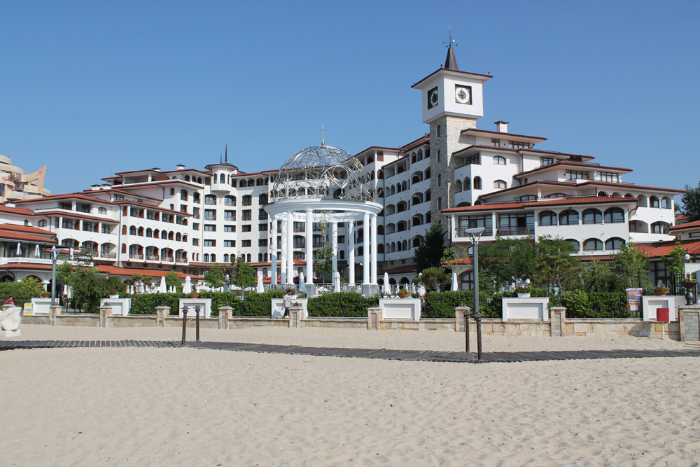 V klidné severní části letoviska, součást komplexu Helena Resort (hotely Helena Sands a Helena Park), přímo u písečné pláže. Centrum s obchody, restauracemi a bary cca 800 m, Nessebar cca 8 km.