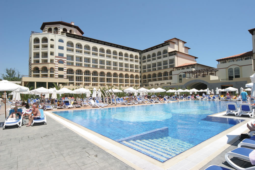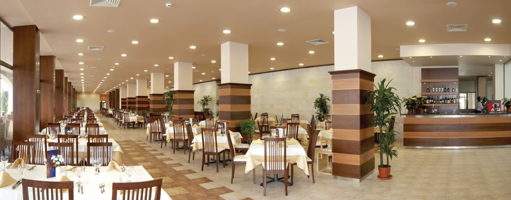 Dvě budovy, vstupní hala s recepcí, směnárna, výtahy, 2 bufetové restaurace, několik barů, kadeřnictví, salon krásy, vnitřní bazén, minimarket, konferenční sál, čistírna. Venku dva bazény, bar u bazénu a terasa s lehátky a slunečníky zdarma, osušky oproti kauci.