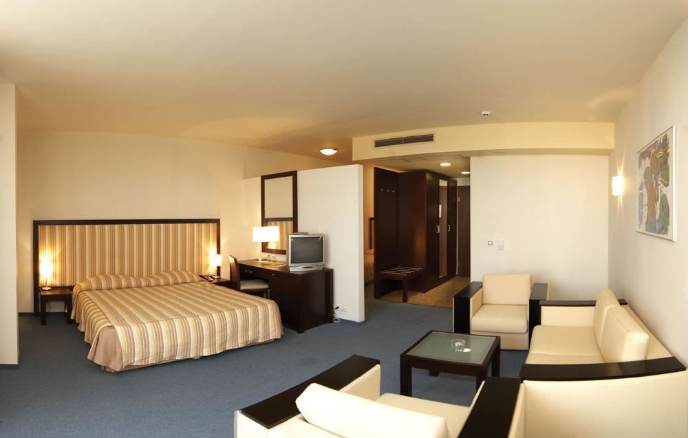 DR: koupelna/WC, vysoušeč vlasů, klimatizace, telefon, TV/sat., minibar a trezor (za poplatek), balkon nebo terasa.