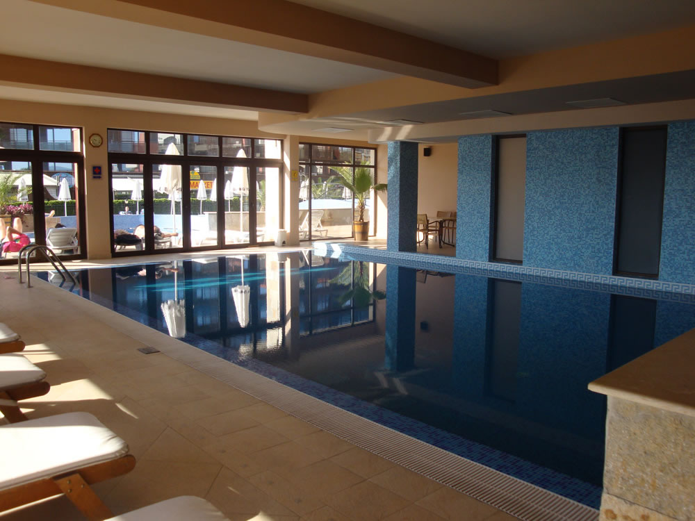 Vstupní hala s recepcí, restaurace, grill restaurace, lobby bar, bazén,TV koutek, minimarket, terasa na slunění s lehátky a slunečníky.