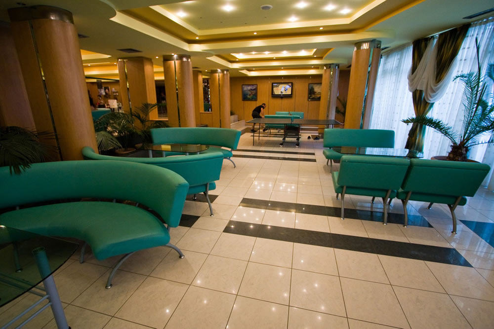 Vstupní hala s recepcí, výtahy, lobby bar, trezor (za poplatek 5€/den), bar u bazénu, snack bar, obchod se suvenýry, kadeřnictví, bazén, vnitřní bazén, dětský klub, hřiště, parkoviště.
