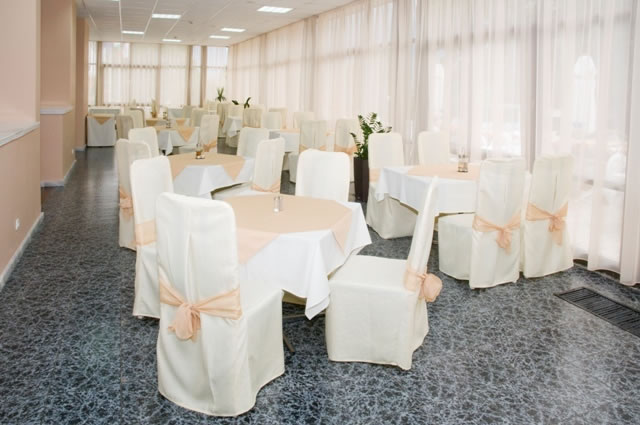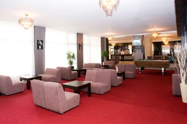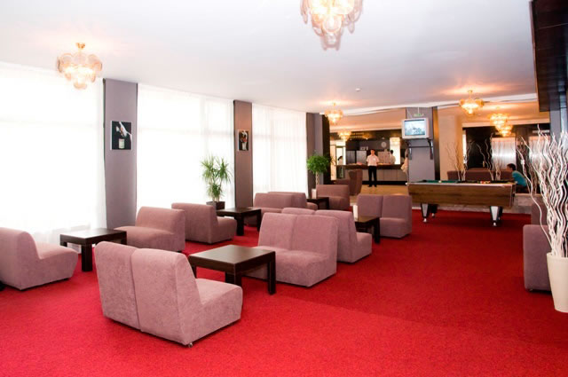 Vstupní hala s recepcí, výtah, restaurace, minimarket, směnárna, lobby bar, venkovní terasa.