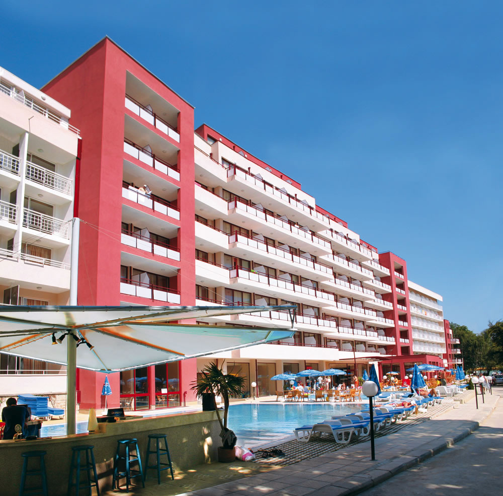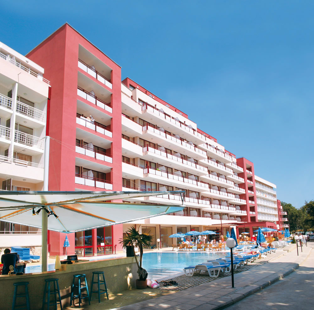 Přímo v centru Zlatých Písků, u hlavní promenády s množstvím barů, restaurací a obchodů v těsném oholí. Hotel a jeho okolí velmi živé až do pozdních večerních hodin, ideální především pro mladé.