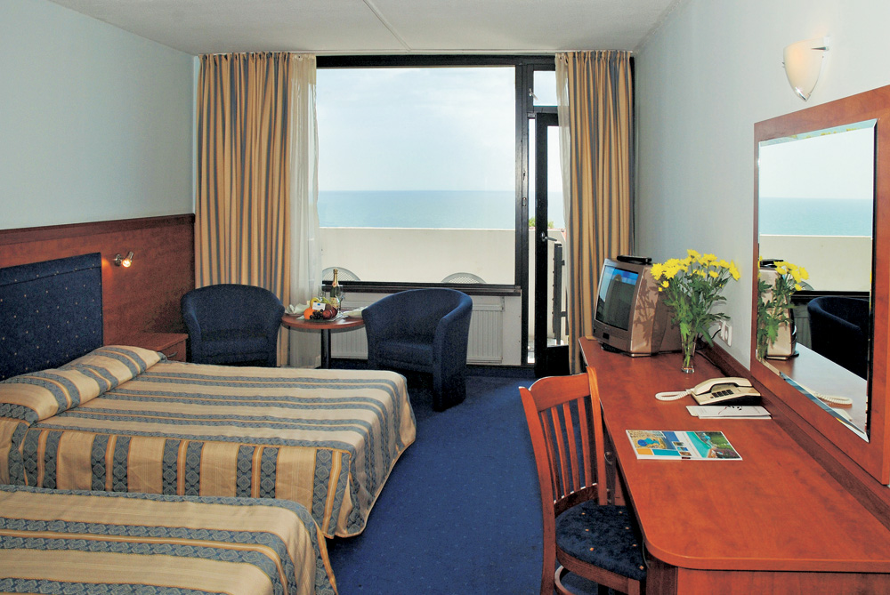 DR: koupelna/WC (vysoušeč vlasů), klimatizace, minibar (na vyžádání, není součástí all inclusive), TV/sat., telefon a balkon.