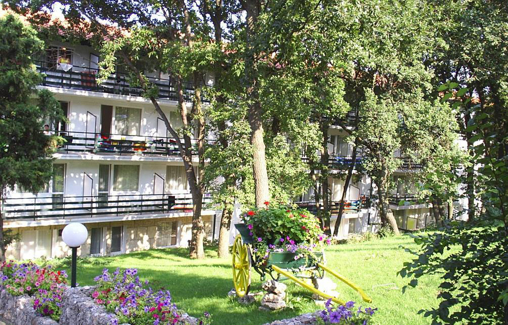 V krásném dubovém lese cca 1 km od centra letoviska s obchody, restauracemi a bary.