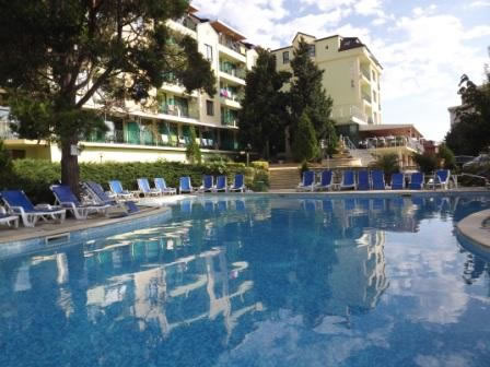 V klidné části letoviska Čajka, centrum s obchody a restauracemi cca 200 m. Do centra Zlatých písků cca 4 km. Hotel zajišťuje autobusovou dopravu na pláž (2x denně, zdarma), do centra Zlatých Písků a do Varny (oboje za poplatek)
