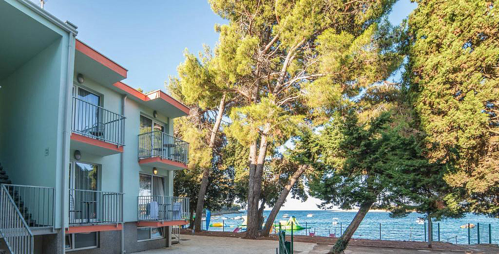 lehátka a slunečníky na pláži*, sprcha na pláži, stolní tenis*, vodní skákadla*, půjčovna šlapadel* a lodí*, půjčovna kol*, nedaleké sposrtovní centrum Banjole (250 m) - tenisové kurty, fotbalové hřiště, hřiště na volejbal