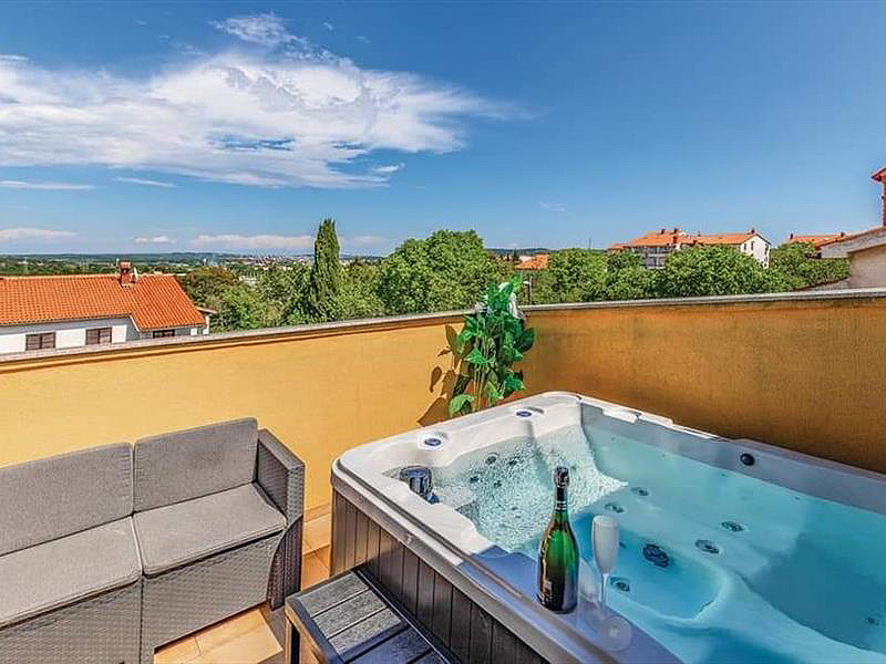bazén, lehátka, slunečníky, vířivka, sauna, možnost zapůjčení kol