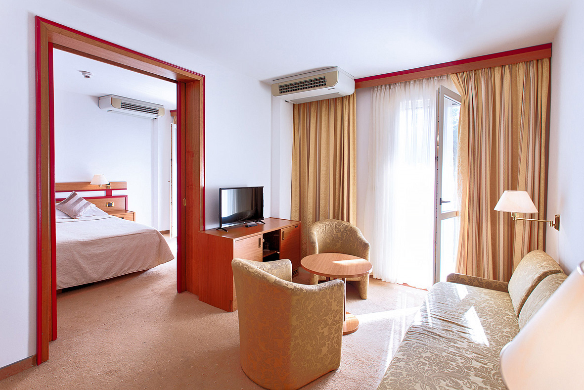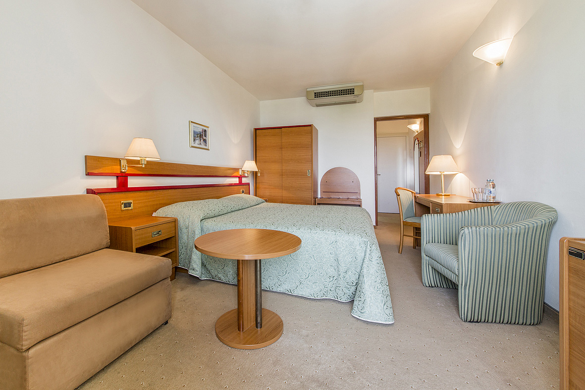 24 m² - pokoj s manželskou postelí nebo oddělenými lůžky, sociální zařízení s vanou, balkon stranou k moři, možnost 3. lůžka formou přistýlky
