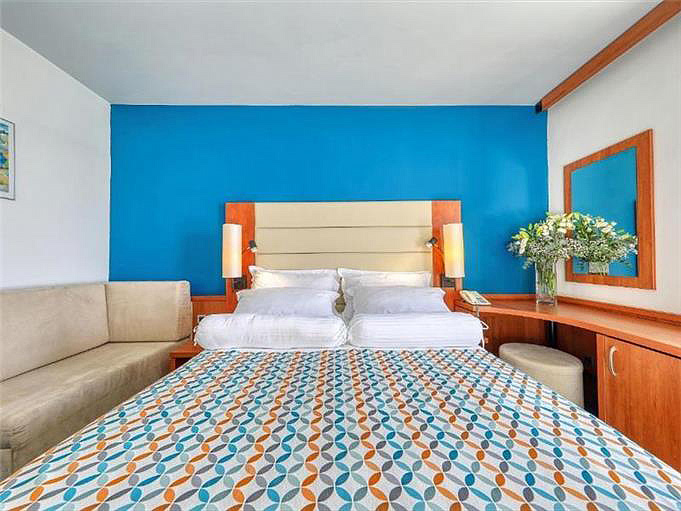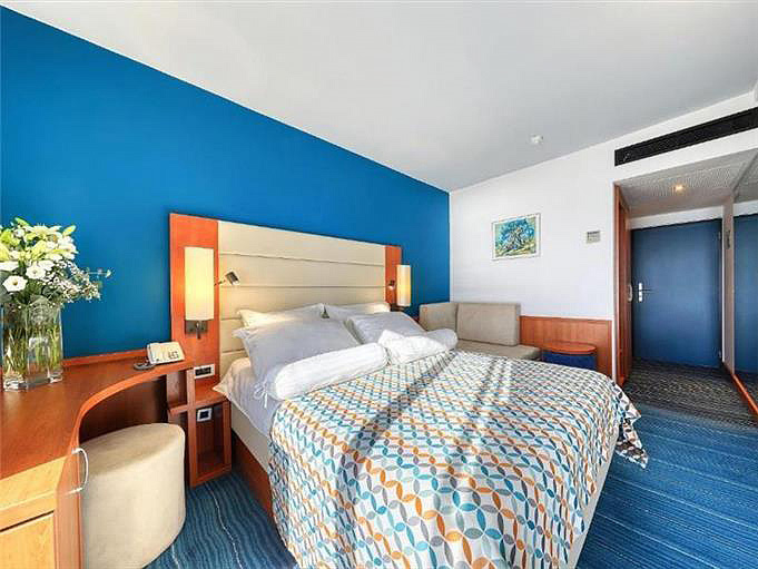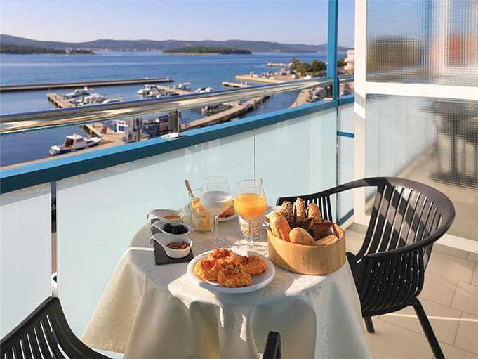 21 m² - pokoj s manželskou postelí či dvěma oddělenými lůžky s možností přistýlky formou mobilního lůžka (75 x 200 cm), sociální zařízení se sprchou, balkon s posezením s výhledem na moře