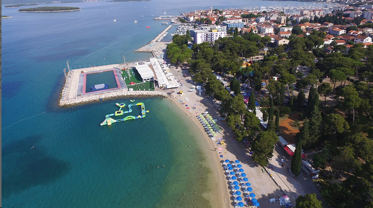 Biograd na Moru, centrum - 50 m, pláž / oblázková s betonovými platy - 150 m, písečná – cca 400 m