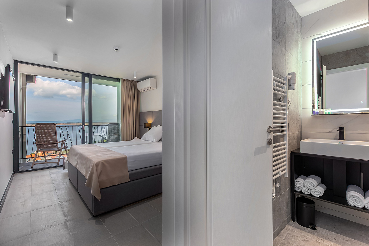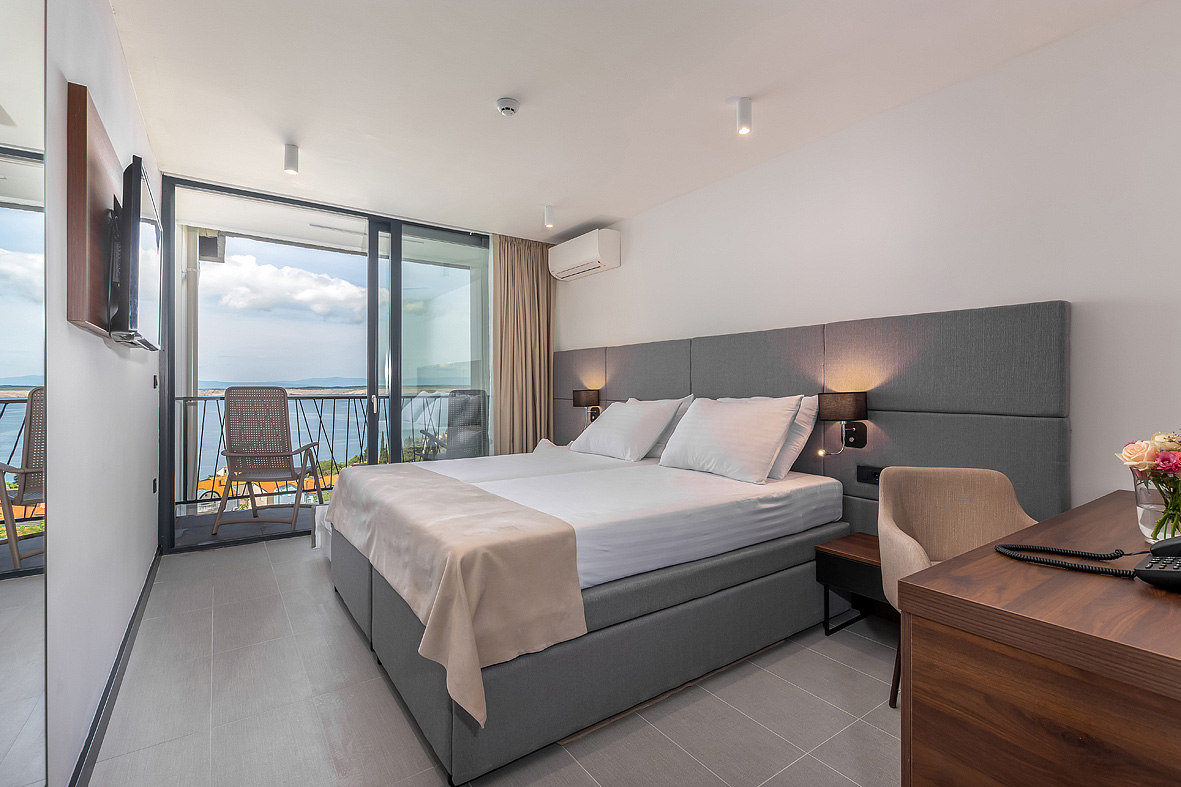 Standard 2+2 BM - pokoj s manželskou postelí a výsuvná přistýlka pro 2 děti do nedovršených 18 let, sociální zařízení, balkon orientovaný k moři