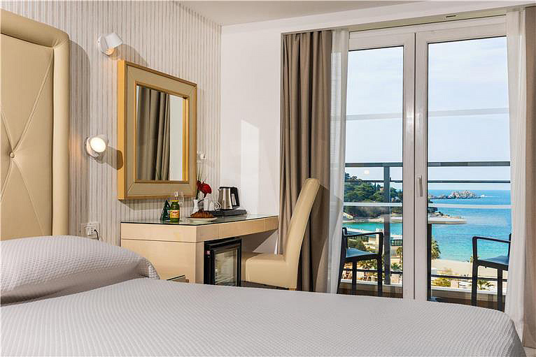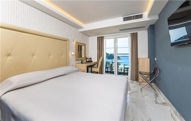 Standard 2/3 balkon - cca 20 m², pokoj s manželskou postelí nebo dvěma samostatnými lůžky s možností přistýlky, sociální zařízení se sprchou nebo vanou, balkon orientovaný na mořskou stranu