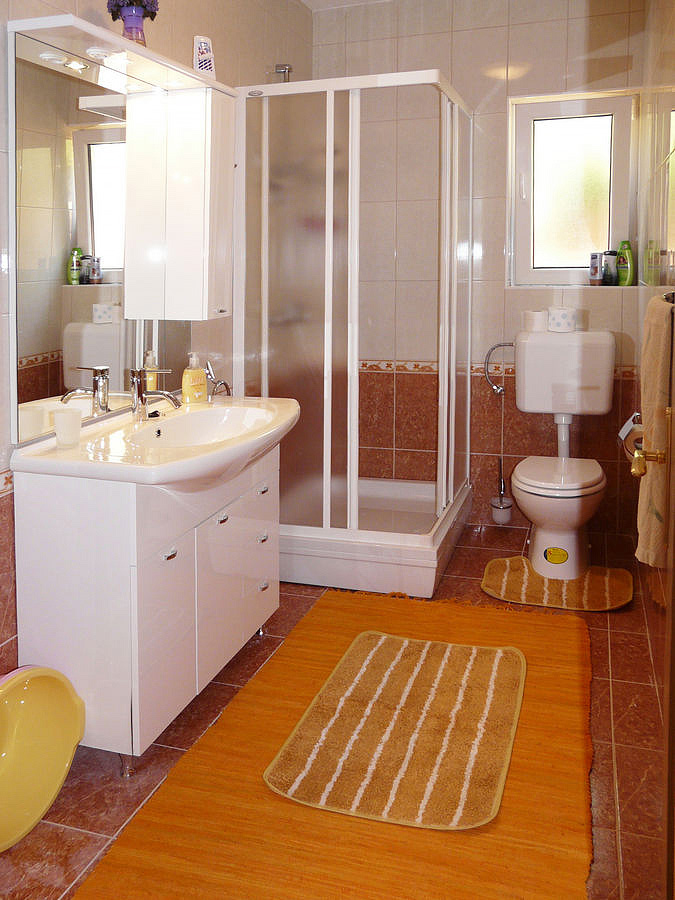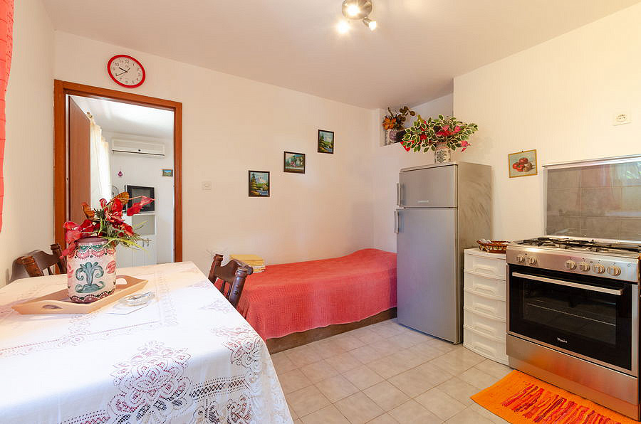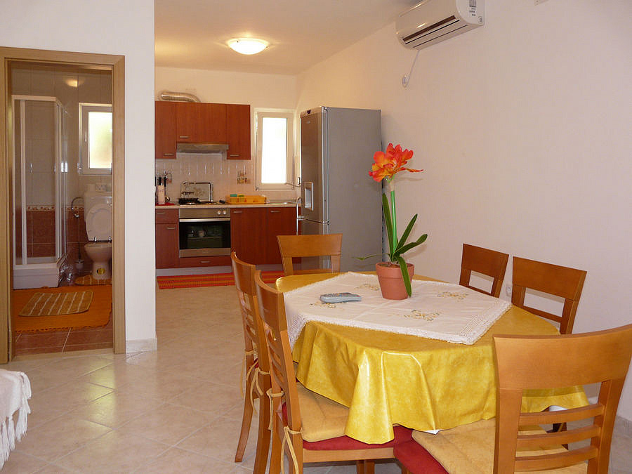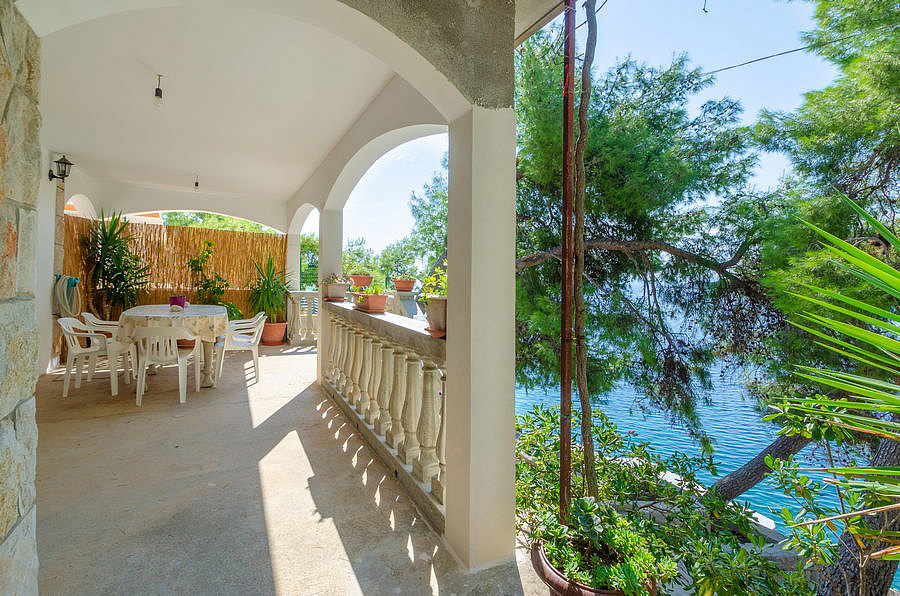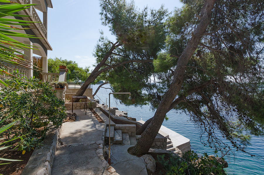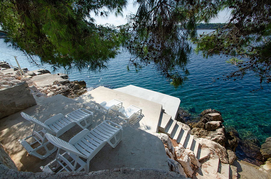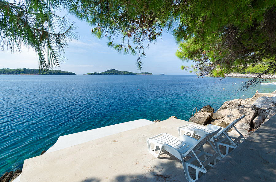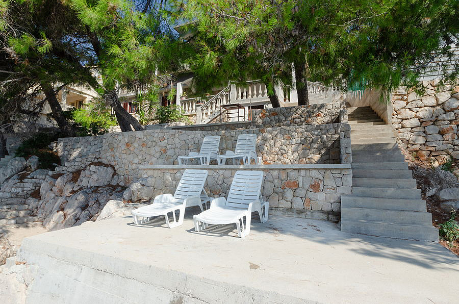 ostrov Korčula, Prižba, pláž / betonová na kamenném pobřeží - 15 m, pláž / oblázková s pozvolným vstupem do moře - 400 m, centrum - 2,3 km