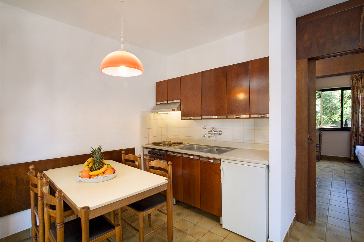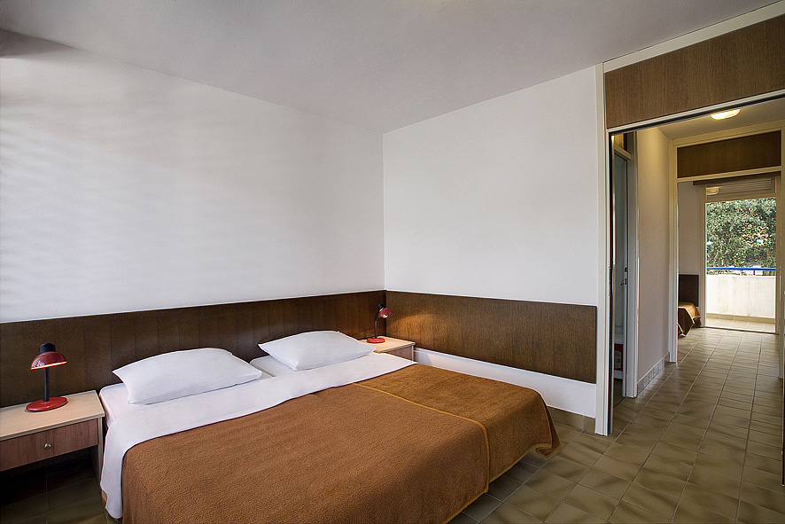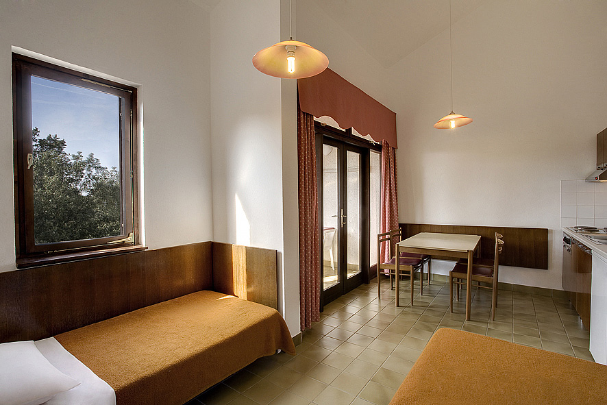 44 m² - 1 ložnice se 2 samostatnými lůžky, obývací pokoj s rozkládací pohovkou (přistýlka pro 2 osoby), kuchyňský kout, sociální zařízení se sprchou, balkon
