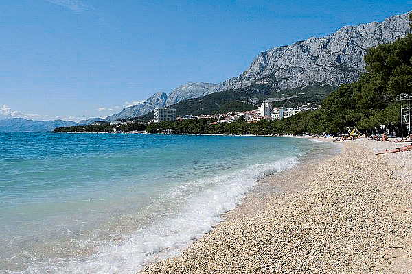 Makarská, pláž / oblázková s pozvolným vstupem do moře - 30 m, centrum - 800 m