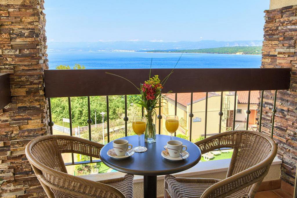Superior 2 balkon M - pokoj s manželskou postelí, sociální zařízení se sprchou nebo vanou, balkon orientovaný k moři
