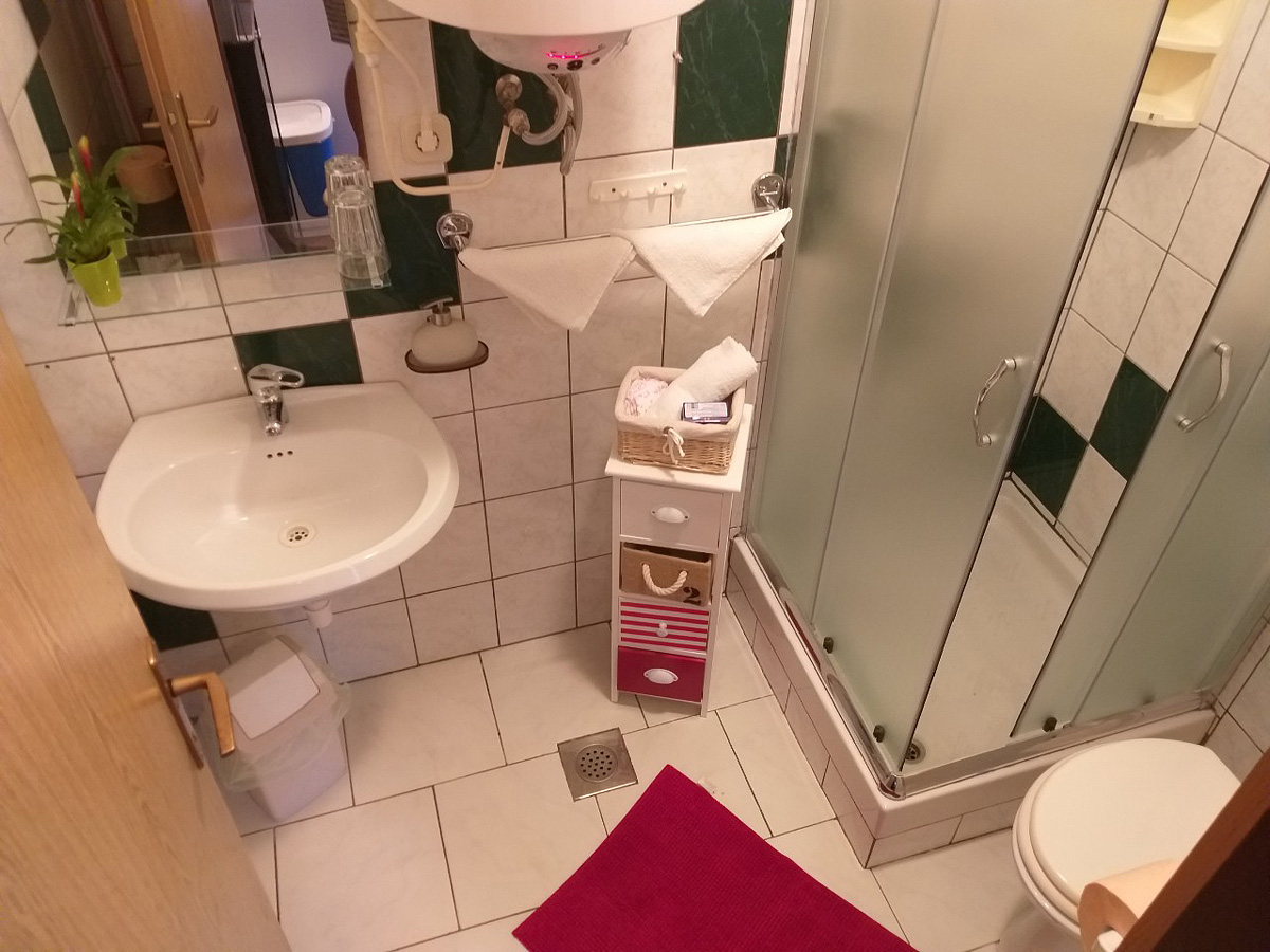 1. patro - 1 ložnice s manželskou postelí, vstupní místnost s kuchyňským koutem, sociální zařízení se sprchou, balkon