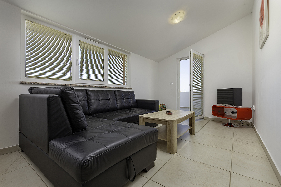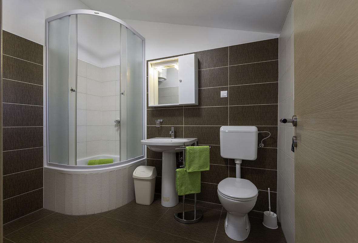 2. patro: apartmán s 1 ložnicí s manželskou postelí, obývací pokoj s rozkládací postelí pro 2 osoby a vybaveným kuchyňským koutem, sociální zařízení se sprchou či vanou, balkon