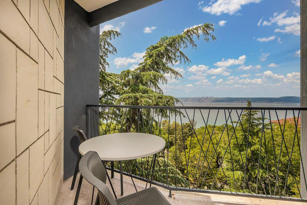 Comfort 2+1 balkon M - cca 18 m² - pokoj s manželskou postelí a přistýlkou formou vysouvacího lůžka pro dítě do nedovršených 15 let, sociální zařízení se sprchou, balkon s výhledem na moře