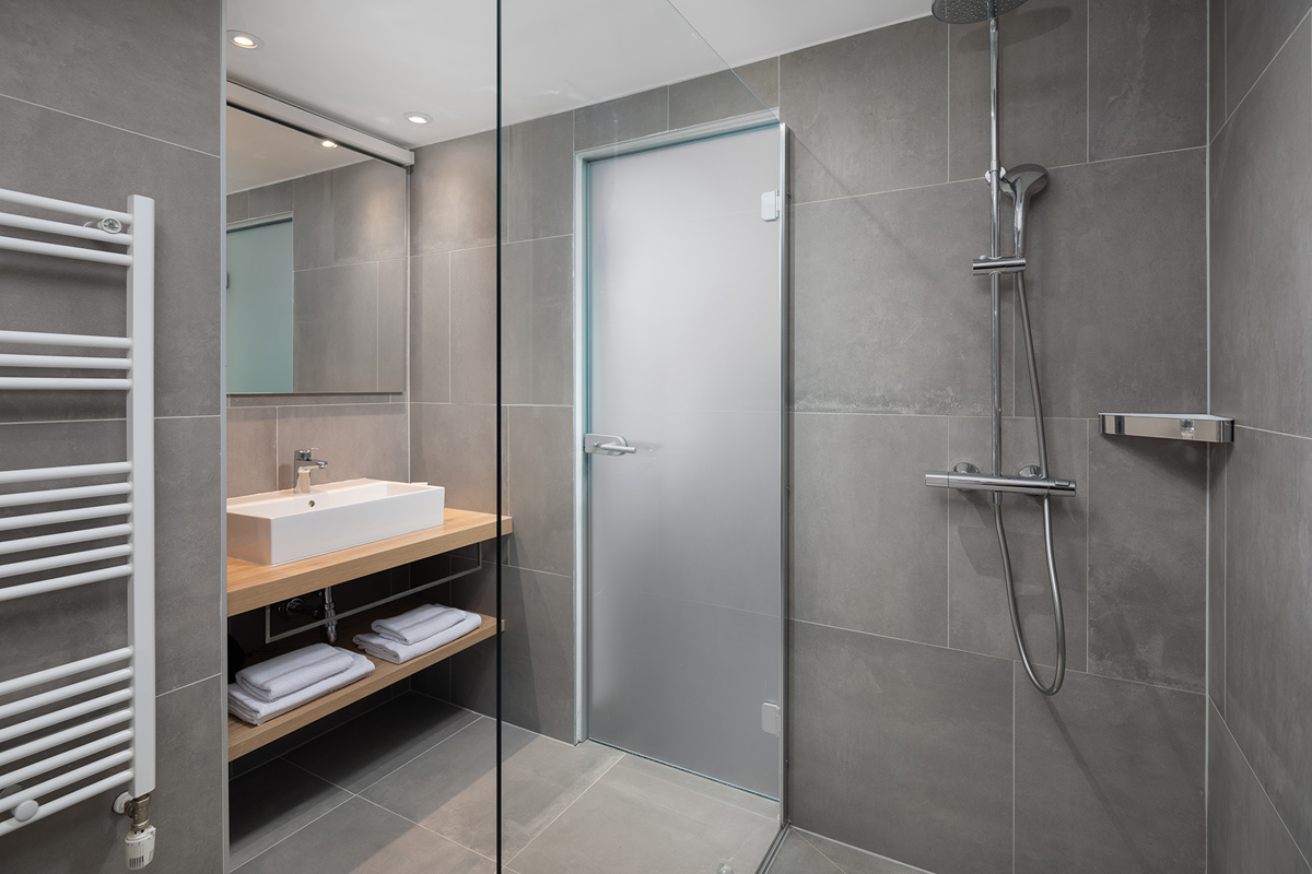 pokoj s manželskou postelí či 2 samostatnými lůžky, zařízení se sprchou