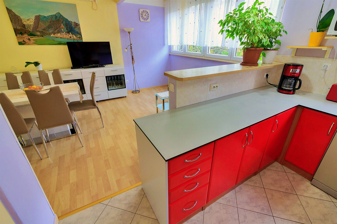 klimatizace, TV sat., wi-fi připojení k internetu, myčka, trouba, lednice s mrazícím oddílem, mikrovlnná trouba, rychlovarná konvice, pračka